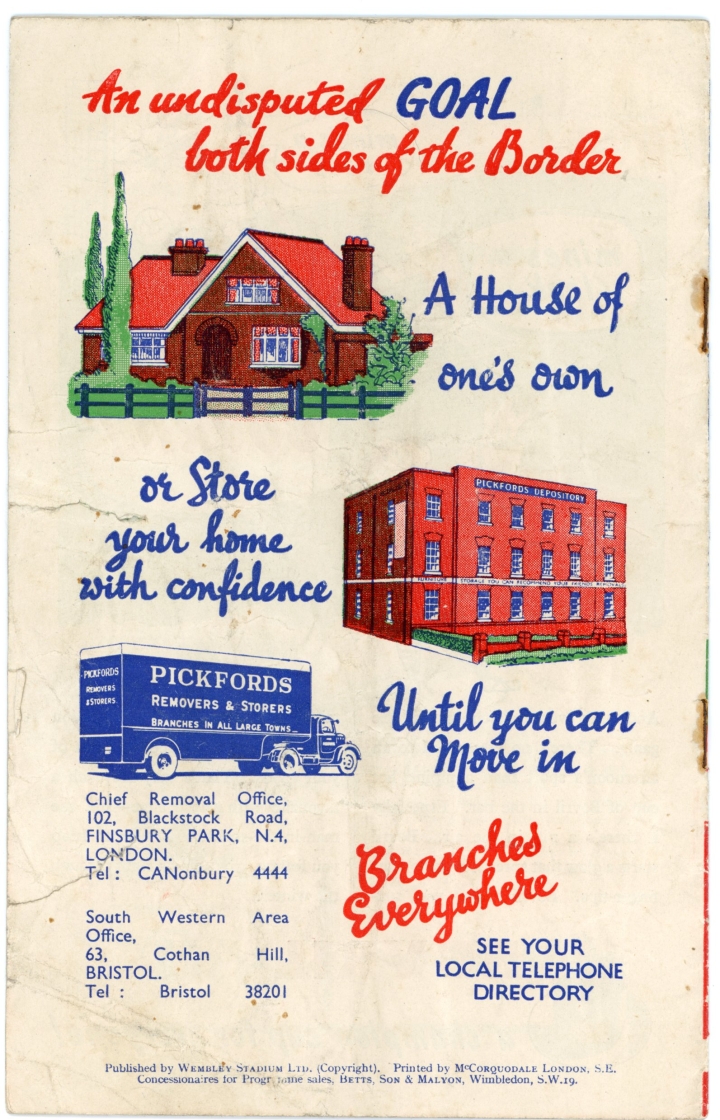 1952 England vs Wales football programme