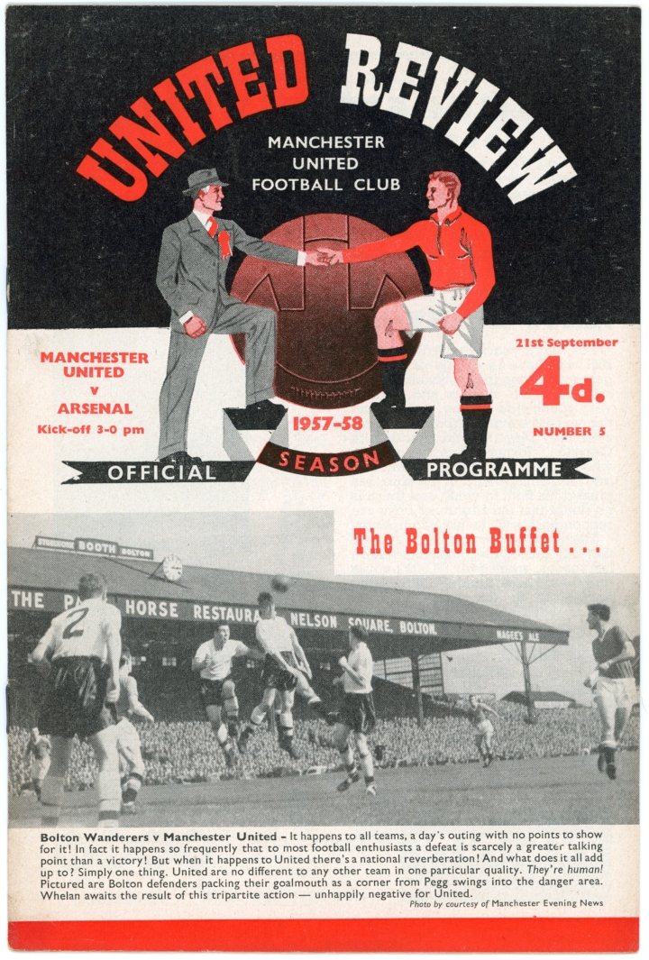 Details - Collectable Manchester United football programme from the Munich air disaster season, United won this match at Old Trafford 4-2 with two goals from William Whelan.