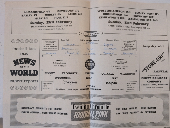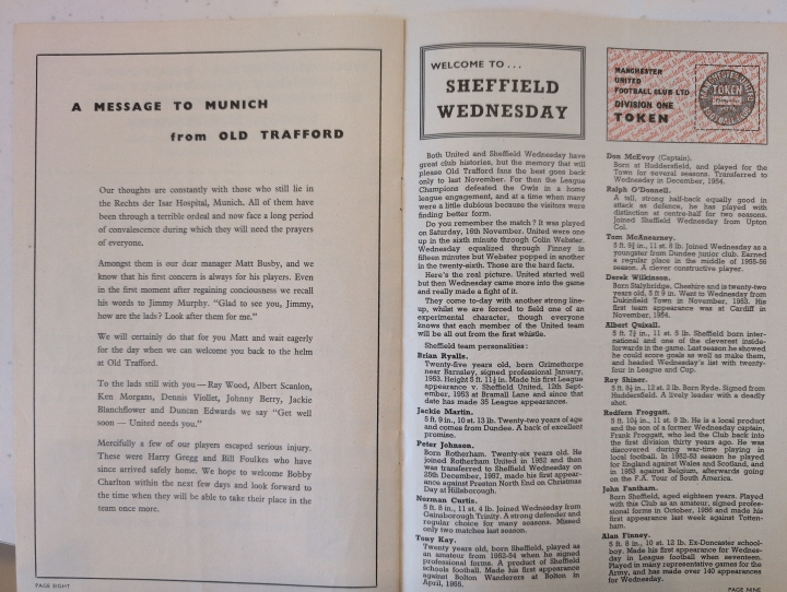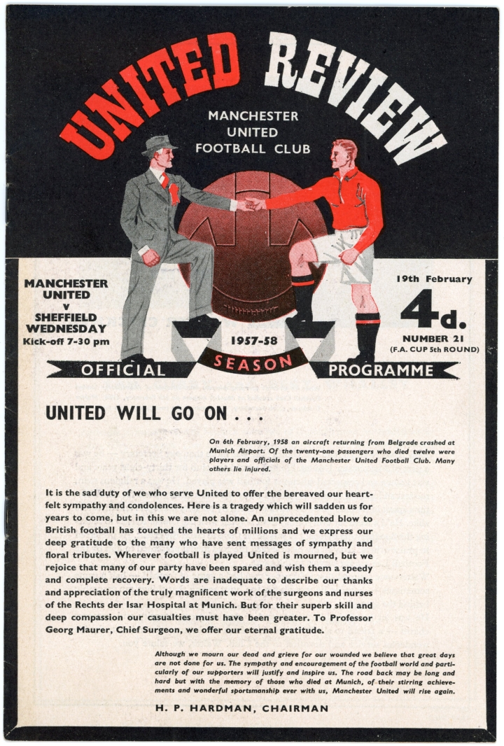 1957-58 Manchester United vs Sheffield Wednesday football programme, first game after Munich air disaster