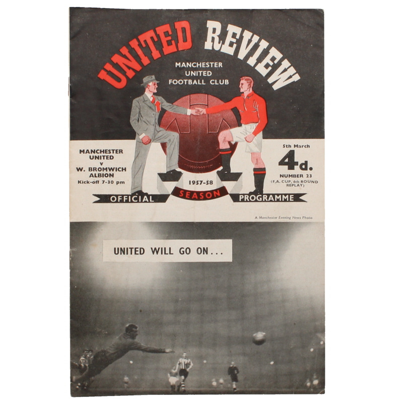 Details - Collectable Manchester United football programme from the tragic Munich air disaster season. A sixth round replay at Old Trafford with United winning 1-0.